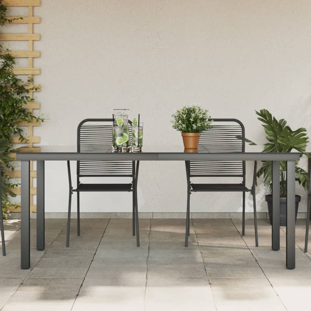 Enhance your outdoor dining experience with the Furniture in Fashion Ankeny Large Glass Top Garden Dining Table in Black. Designed for modern elegance and durability, this sophisticated garden table features a spacious tempered glass top, offering a sleek and stylish surface for alfresco dining. The black powder-coated frame adds a contemporary touch while ensuring strength and stability, making it an ideal centrepiece for your patio, garden, or outdoor entertainment space. Built to withstand outdoor elements, the Ankeny garden dining table is crafted from high-quality, weather-resistant materials, ensuring long-lasting use. Its generous surface area comfortably accommodates multiple guests, making it perfect for summer barbecues, family gatherings, or casual outdoor meals. Whether paired with rattan chairs or metal seating, this versatile glass dining table elevates any outdoor setting with its timeless appeal. Upgrade your outdoor space with the Furniture in Fashion Ankeny Large Glass Top Garden Dining Table in Black, offering both style and functionality for memorable outdoor dining moments. FEATURES : Material : Glass, Aluminium Finish : Black This table with glass top will be ideal for use in your garden, terrace or patio The table top is made of glass that is weather resistant and easy to clean The strong aluminium frame with powder coating makes the table sturdy and durable Assembly is easy The legs are made of sturdy metal The material is very easy to clean Spacious Tempered Glass Top Provides a sleek and durable dining surface Black Powder-Coated Frame : Strong, stable, and stylish for modern outdoor spaces Weather-Resistant Construction : Designed for durability and long-term outdoor use Generous Seating Capacity : Perfect for family meals, gatherings, and entertaining Sturdy & Durable Build : Ensures reliability and stability on any outdoor surface Versatile Outdoor Use : Ideal for patios, gardens, balconies, and terraces Avai