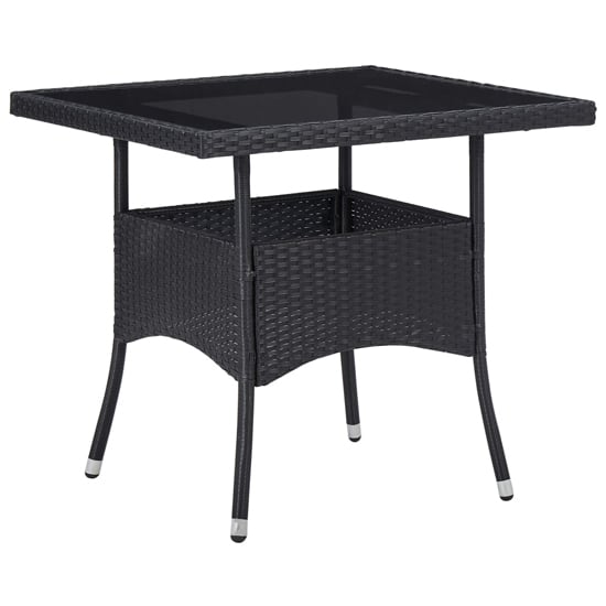 Discover the Beile Outdoor Glass Top Dining Table in Black Poly Rattan by Furniture in Fashion. Elevate your outdoor dining experience with this sleek and modern table. Crafted with durable poly rattan and featuring a stylish glass top, it combines functionality and elegance. Whether hosting a barbecue or enjoying a meal with family and friends, this dining table is designed to impress. Browse our extensive collection of furniture and transform your outdoor space into a sophisticated oasis. FEATURES : Material : PE Rattan and Steel Frame Table Top Material: Tempered Glass Finish : Black Update your backyard or porch with this inviting patio dining table It can effortlessly accommodate the needs of your guests while creating the perfect outdoor dining setting You can enjoy dinner under the stars or a sunny lunch on the patio with our dining table It can accommodate up to 4 people Featuring a powder-coated steel frame covered with weather resistant PE rattan with UV protection, this table ensures years of outdoor use Made of reinforced tempered glass in strong support, the tabletop is easy to maintain and clean The lightweight rattan construction makes this table easy to move and replace We recommend that you cover the table during rain, snow, frost or other harsh weather to prolong its life span Available at an affordable price Images shown are for illustration purpose only DIMENSIONS : Height : 75cm Length : 80cm Width : 80cm