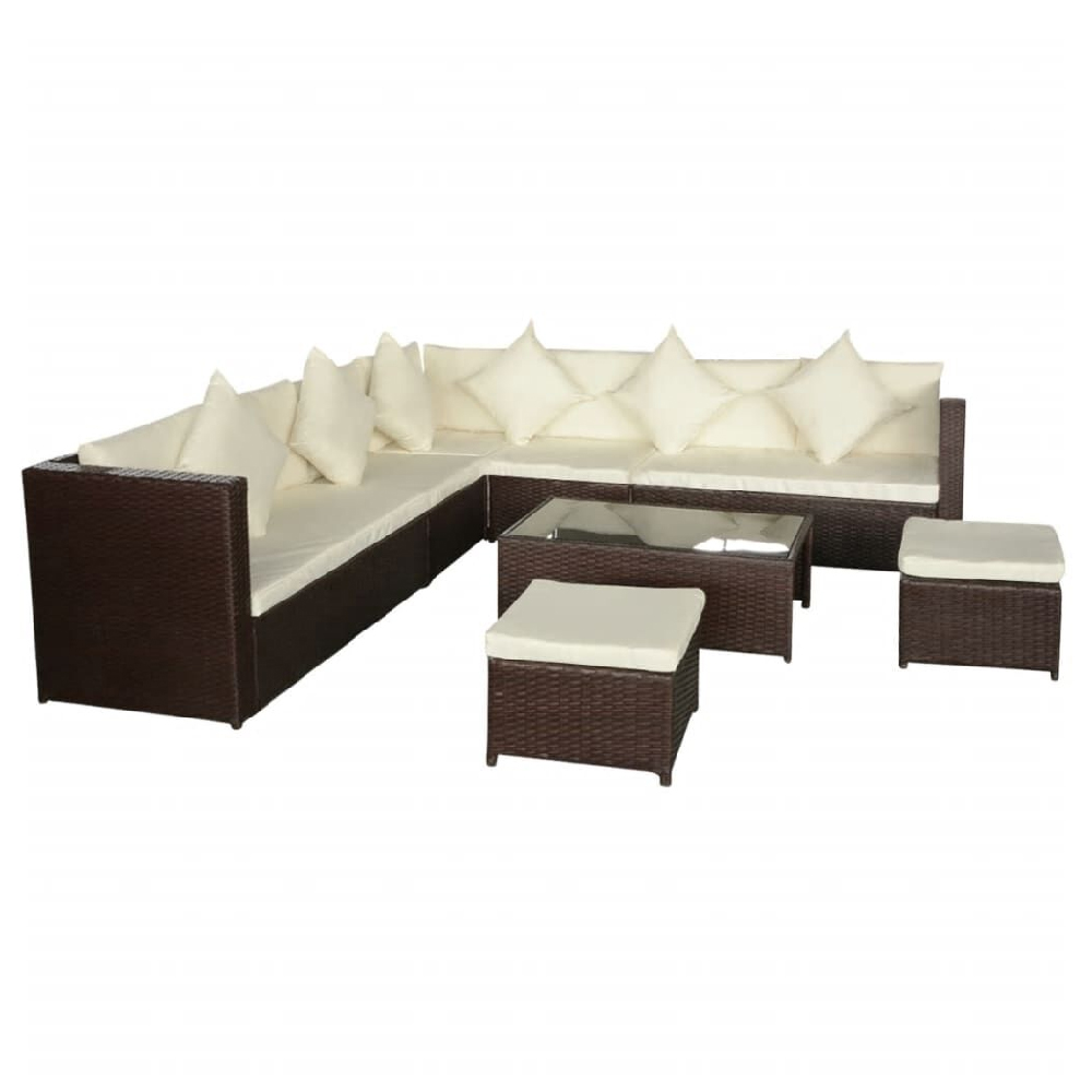 Create a stylish and relaxing outdoor retreat with the Furniture in Fashion Choctaw Rattan Garden Lounger Set with Cushions in Cream Brown. This elegant rattan lounger set features a sophisticated Brown rattan frame paired with plush cream cushions, delivering both modern aesthetics and supreme comfort. Whether you’re sunbathing, reading, or enjoying a peaceful moment outdoors, this luxurious lounger set enhances any patio, garden, or poolside area with its contemporary charm. Designed for durability and all-weather use, the Choctaw garden lounger set is crafted from high-quality, weather-resistant rattan, ensuring long-lasting beauty and performance. The ergonomic lounger design provides excellent back support, while the thick cushions offer enhanced comfort. With its sleek and low-maintenance construction, this versatile outdoor furniture set is the perfect combination of style, relaxation, and practicality. Enhance your outdoor experience with the Furniture in Fashion Choctaw Rattan Garden Lounger Set with Cushions in Cream Brown, a perfect blend of sophistication, comfort, and durability for any modern outdoor space. FEATURES : Material : Rattan, Polyester Finish : Brown, Cream White 2 x 2-seater sofa, 2 x Armless sofa, 1 x Corner sofa, 1 x Coffee table, 2 x Footrest, 8 x Back cushion, 7 x Seat cushion, 6 x Pillow This stylish yet highly comfortable rattan sofa set will be an eye-catcher in your garden or on the patio Thanks to the weather-resistant PE rattan, the sofa set is easy to clean and is hard-wearing and suitable for daily use The sofa features a sturdy, powder-coated steel frame, which is highly durable The removable seat and back cushions are very comfortable The polyester covers are soft and easy to clean The rattan sofa set can be easily moved to suit any setting Note : We recommend covering the set in rain, snow and frost This set has strong steel frames with a durable powder coating for stability during daily outdoor use Th