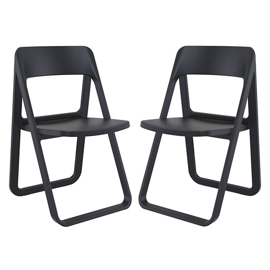 Far from your average folding chair the Durham Black Polypropylene Dining Chairs In Pair is quite simply that. Its a dream to fold, store and add style and colour to any room. Requiring no assembly and little maintenance, when folded up to eight chairs can be stored safely with ease. The chair has a highly contemporary, soft, moulded design so it looks great but feels even better. FEATURES : Material : Recyclable Polypropylene Finish : Black Durham Black Polypropylene Dining Chairs In Pair Perfectly suited for areas that need to be rearranged often or quickly without compromising style Folding chair is saltwater resistant, weather proof and has additional safety Featuring including anti-slip rubber feet caps and an easy folding structure which clicks into place when deployed Making it perfectly suited to outdoor spaces and pool sides Manufactured in recyclable polypropylene This dining chair is CATAS tested for contract durability Suitable for indoor and outdoor use Available at an affordable price Images shown are for illustration purpose only DIMENSIONS : Height : 82cm Width : 48cm Depth : 52cm Seat Height : 45cm