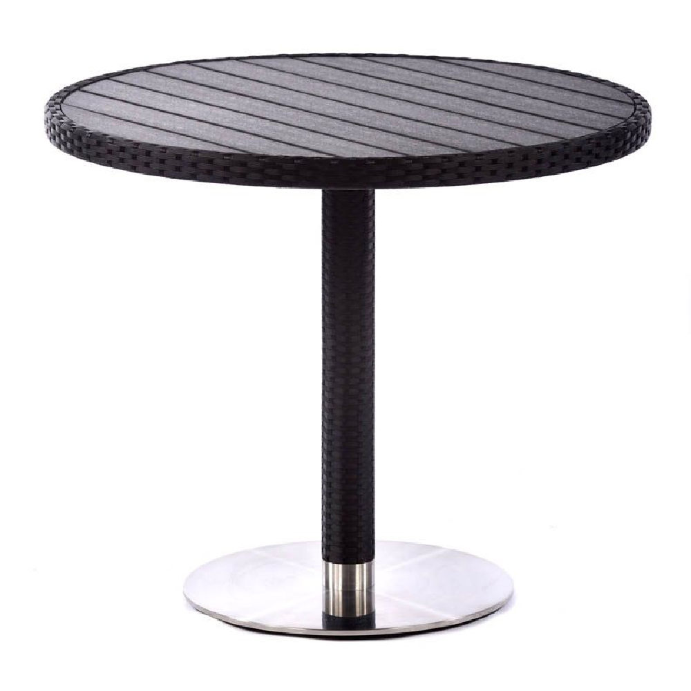 Marfa Rattan Outdoor Round Dining Table In Black Weave