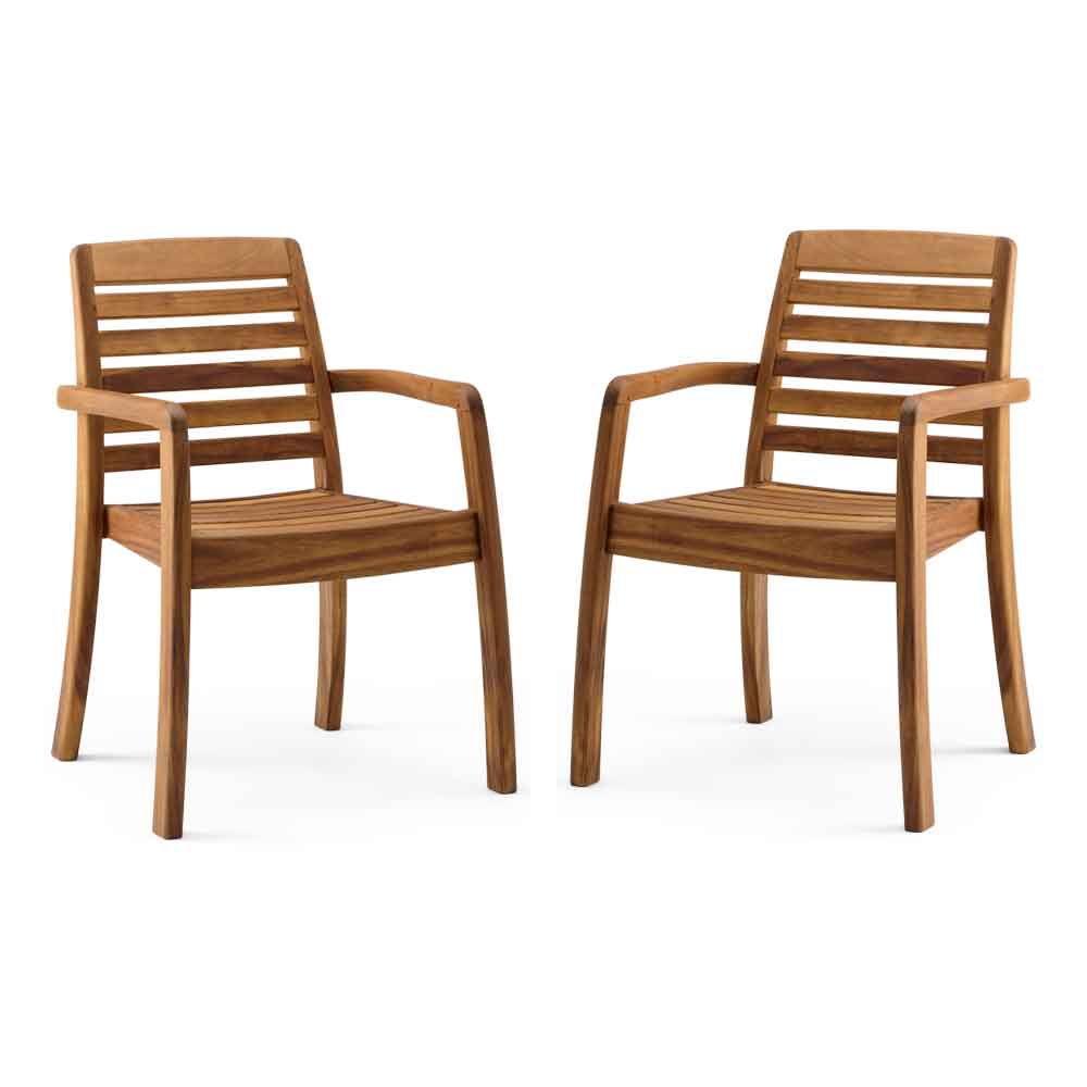 Ozone Outdoor Wooden Dining Chair Pair with Arms in Natural