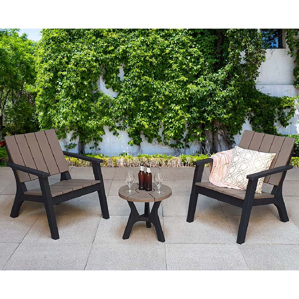 Transform your outdoor space with the Furniture in Fashion Paramus Plastic Garden Lounge Set In Black And Grey, a perfect blend of style, durability, and comfort. Designed for modern outdoor living, this sleek lounge set features a contemporary black and grey colour scheme that enhances any patio, garden, or balcony. Made from high-quality, weather-resistant plastic, it offers long-lasting performance with minimal maintenance, making it an ideal choice for year-round use. The Paramus Garden Lounge Set includes a spacious sofa, two comfortable armchairs, and a matching coffee table, providing ample seating for family and friends. The ergonomically designed seats with plush cushions ensure maximum relaxation, while the sturdy frame guarantees stability and support. Whether you’re enjoying a morning coffee, hosting a summer gathering, or simply unwinding after a long day, this stylish and practical lounge set is the perfect outdoor companion. Upgrade your outdoor relaxation with the Furniture in Fashion Paramus Plastic Garden Lounge Set, where contemporary design meets lasting comfort and functionality. FEATURES : Material : Plastic Finish : Grey 2 x Armchair, 1 x Side Table Paramus 2 seat set in moulded plastic – 2 tone black and grey Full Assembly required Contemporary black and grey finish complements any outdoor setting Made from high-quality, weather-resistant plastic for long-lasting use Includes a spacious sofa and two armchairs with plush cushions for extra comfort Strong frame ensures durability and support for outdoor lounging Provides a convenient space for drinks, snacks, and decor items Easy to clean and resistant to rust, fading, and wear Easy to move and rearrange to suit your outdoor space Available at an affordable price Images shown are for illustration purpose only ARMCHAIR DIMENSIONS : Height : 99cm Width : 66cm Depth : 62cm SIDE TABLE DIMENSIONS : Height : 42cm Width : 45cm Depth : 45cm