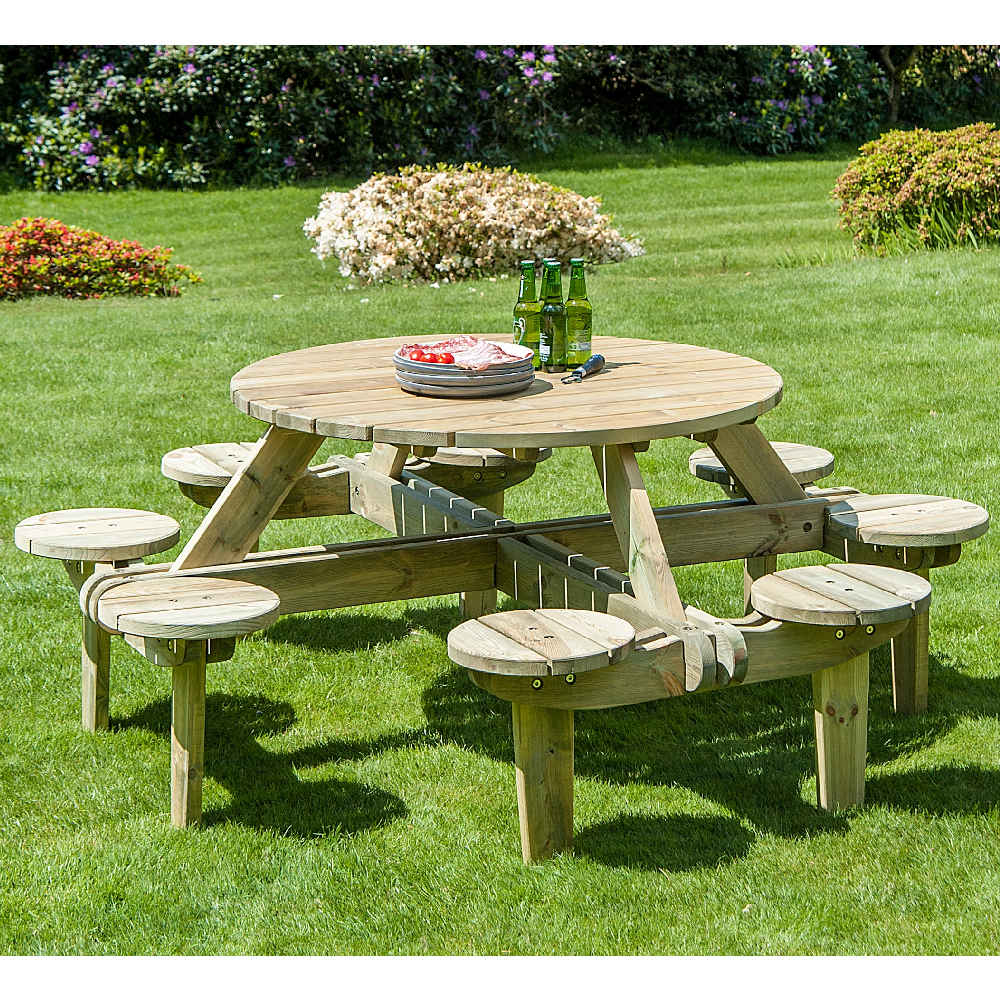 Enhance your outdoor gatherings with the Pelham Wooden Garden Round Picnic Dining Set in Ash Grey by Furniture in Fashion. Designed for both comfort and style, this beautifully crafted set provides a charming and functional dining space for your garden, patio, or backyard. The round table encourages conversation and socializing, while the attached seating ensures convenience, making it the perfect choice for family meals, outdoor picnics, or relaxed get-togethers with friends. Crafted from high-quality wood with a stylish ash grey finish, this picnic dining set is built to withstand outdoor conditions while maintaining its elegant appearance. Its sturdy and durable design ensures long-lasting use, while the smooth tabletop provides ample space for dining and entertaining. Whether for casual brunches or evening gatherings, this set offers a practical and sophisticated outdoor dining solution. Upgrade your outdoor space with the Furniture in Fashion Pelham Wooden Garden Round Picnic Dining Set, offering a stylish, durable, and inviting setting for alfresco dining and relaxation. FEATURES : Material : Wooden Finish : Ash Grey This pine picnic table will ensure that you and 7 of your nearest and dearest have a very relaxed and sociable day The table top is 1. 1m wide in diameter, so theres plenty of room for all your drinks, your BBQ food or your picnic selection Round tables are always the number 1 choice for a sociable gathering, they also offer everyone plenty of room to manoeuvre around and get up and down from their seats with ease The wood is that lovely, traditional light pine colour and its been treated so it can withstand all year round outside use Premium Wooden Construction Made from high-quality wood for strength and durability Round Table Design Encourages easy conversation and social interaction Stylish Ash Grey Finish Complements modern and traditional outdoor settings Attached Seating Benches Convenient and space-saving for e