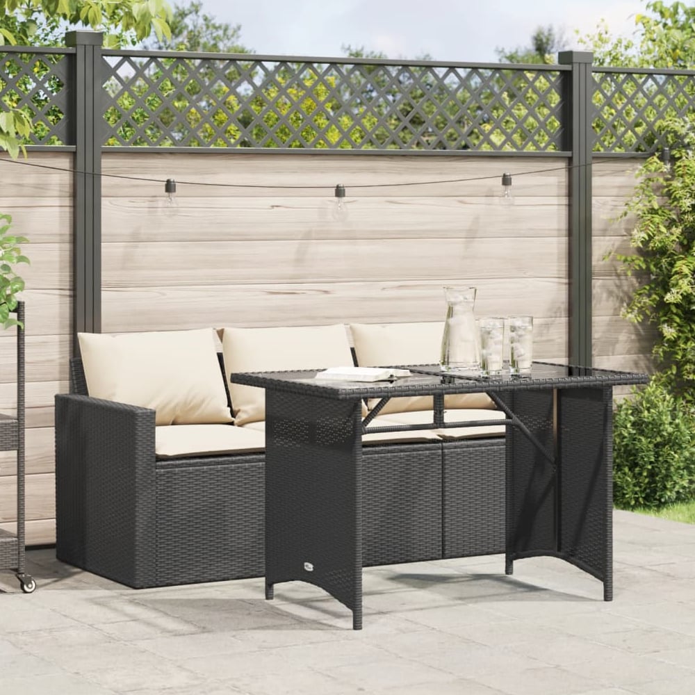Ponce Rattan Glass Outdoor 3 Seater Dining Set In Black Cream